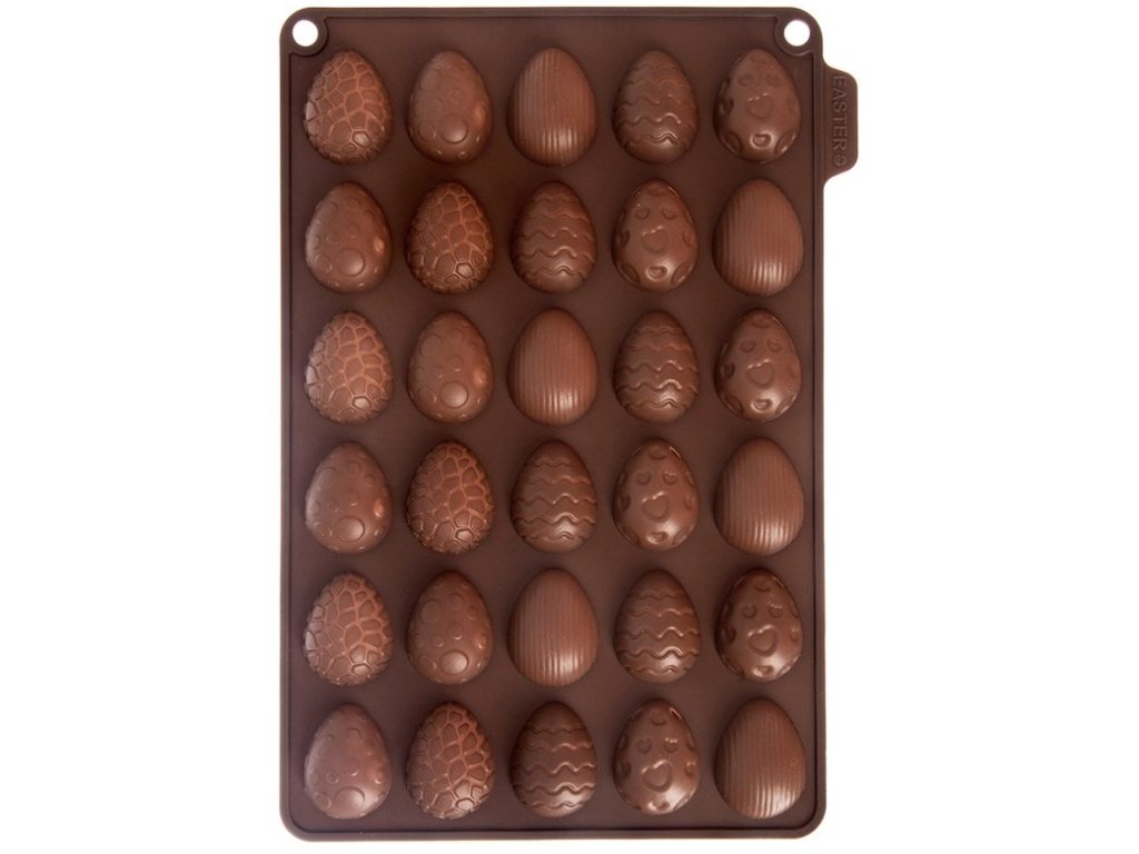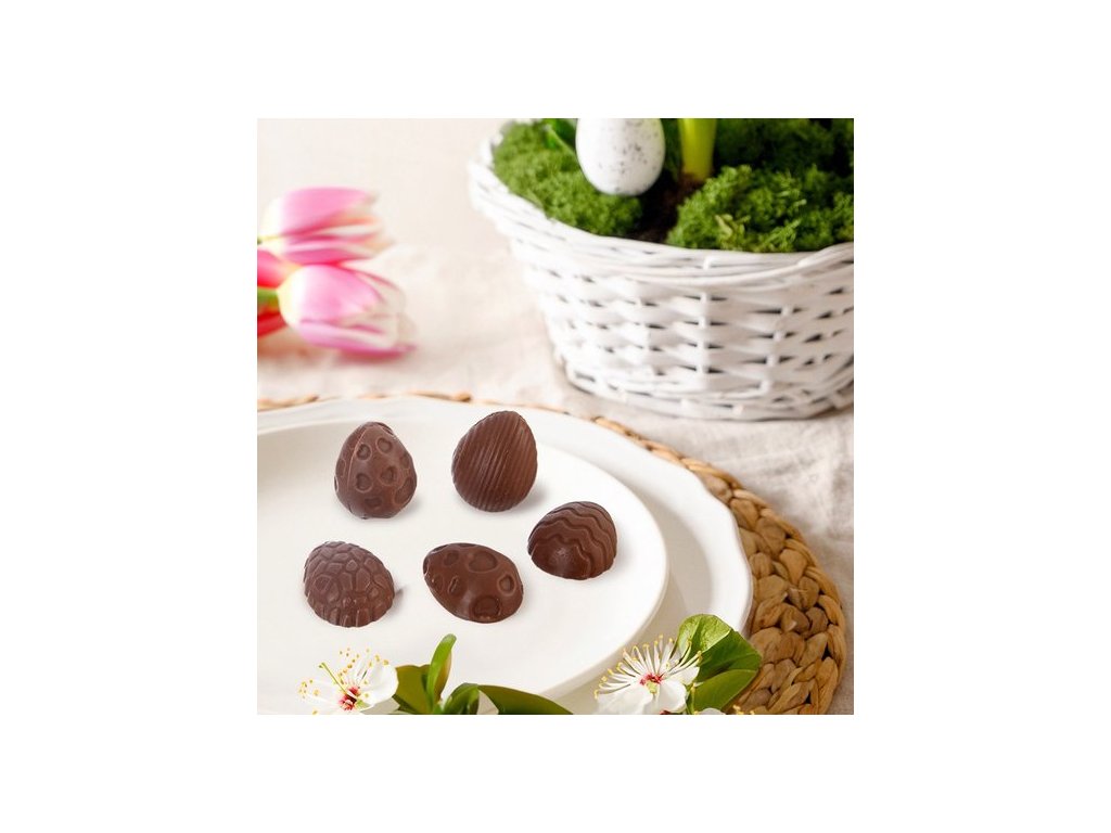Pokud jste milovníkem kvalitní hořké čokolády nebo jemných mléčných pralinek, které se rozplynou na jazyku, tak tahle nepřilnavá forma plná velikonočních vajíček vás určitě potěší.