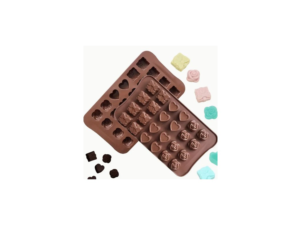 Vhodné na čokoládové pralinky ve tvaru srdce, květu a dárečku